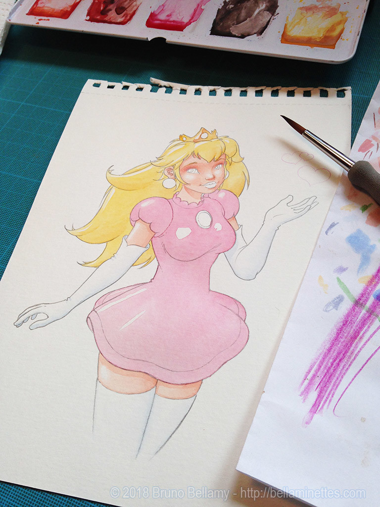 WIP (Watercolor In Progress) : #bellaminette de la #SaintValentin2018 #fanart #PrincessPeach j’y suis presque ! Oui je sais je suis pas en avance… ;) https://mast.eu.org/media/vkDv3Ket3HrK-6hDBW0