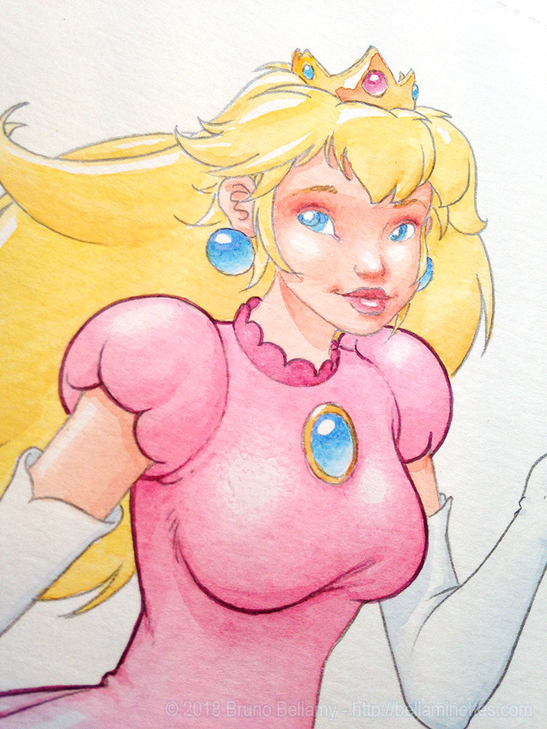 WIP (Watercolor In Progress) : #bellaminette de la #SaintValentin2018 #fanart #PrincessPeach étape super délicate, je repasse les traits à la couleur, avec un pinceau super fin ! Un seul geste maladroit peut ruiner tout le dessin… #BossDeFinDeNiveau https://mast.eu.org/media/UWSslZj19AQXLSGvw7M